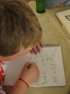 Jack wanted to write me some sentences the other day when he got off the bus - I am one proud Momma! He's come so far - he's growing and learnin' so much :)